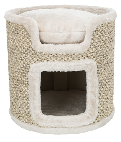 De ligplateaus zijn gevoerd voor meer comfort en het bijgeleverde wendbare kussen zorgt ervoor dat jouw kat heerlijk zacht kan wegdromen. De schuilplaats onderop is bekleed met lekker zacht pluche en fleece en aan de buitenkant is de ton bekleed met sisal, om jouw kat genoeg krabmogelijkheden te bieden.
